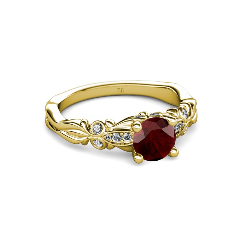 • 14 Round Diamond of 0.14 ctw/1.3 mm and 1 Round Red Garnet of 1.05 ctw/6.5 mm set using Pave, Prong & Bezel Setting.