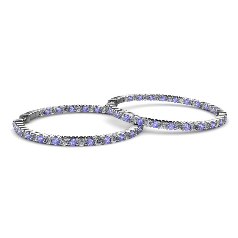 Round Tanzanite and Natural Diamond 6.23 ctw Common Prong Inside Outside Women Eternity Hoop Earrings 14K White Gold More Details ...