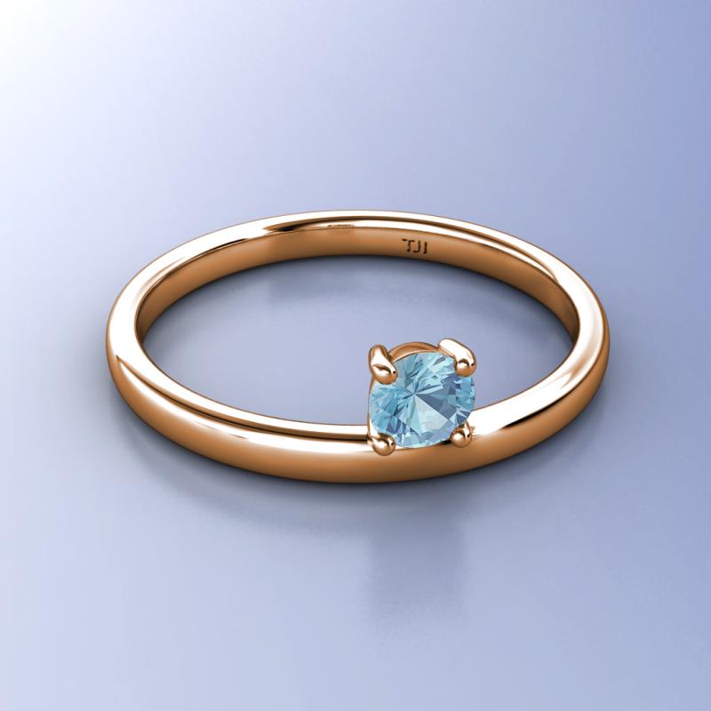 5.00 mm Round Aquamarine 0.40 ct Womens Solitaire Asymmetrical Stackable Ring 18K Rose Gold More Details ...