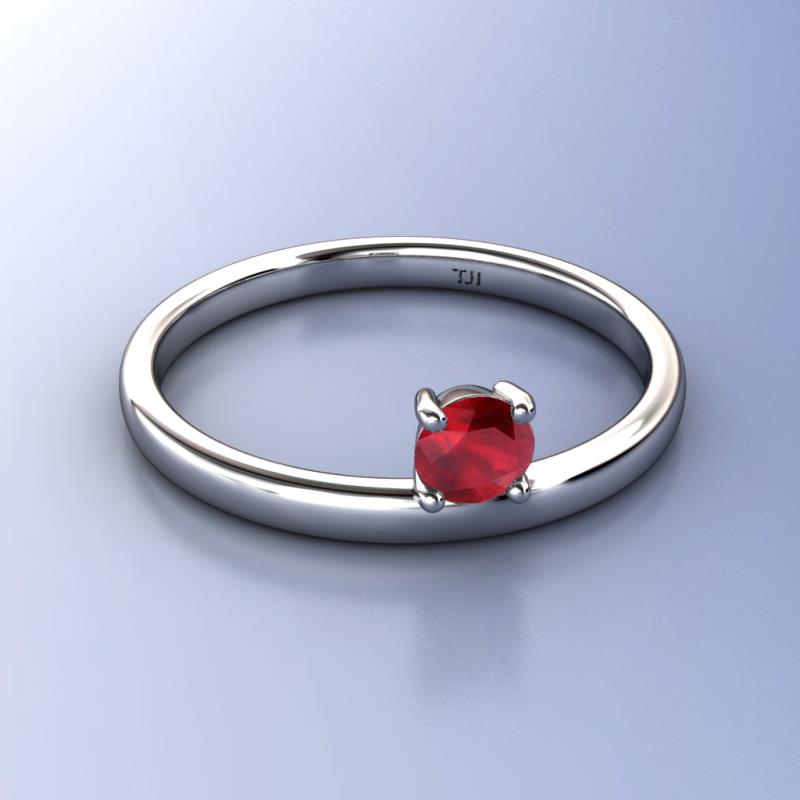 5.00 mm Round Ruby 0.53 ct Womens Solitaire Asymmetrical Stackable Ring 10K White Gold More Details ...
