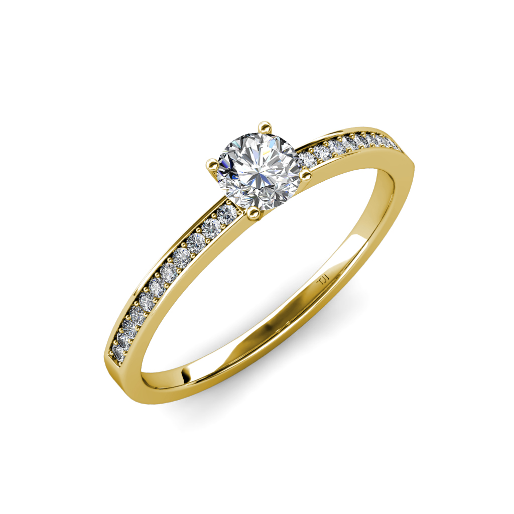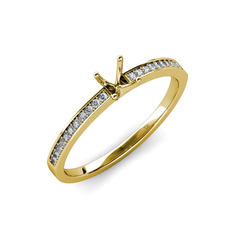 • Four Prong Semi Mount Engagement Ring with side Diamond of 0.18 ct tw in 14K Yellow Gold.