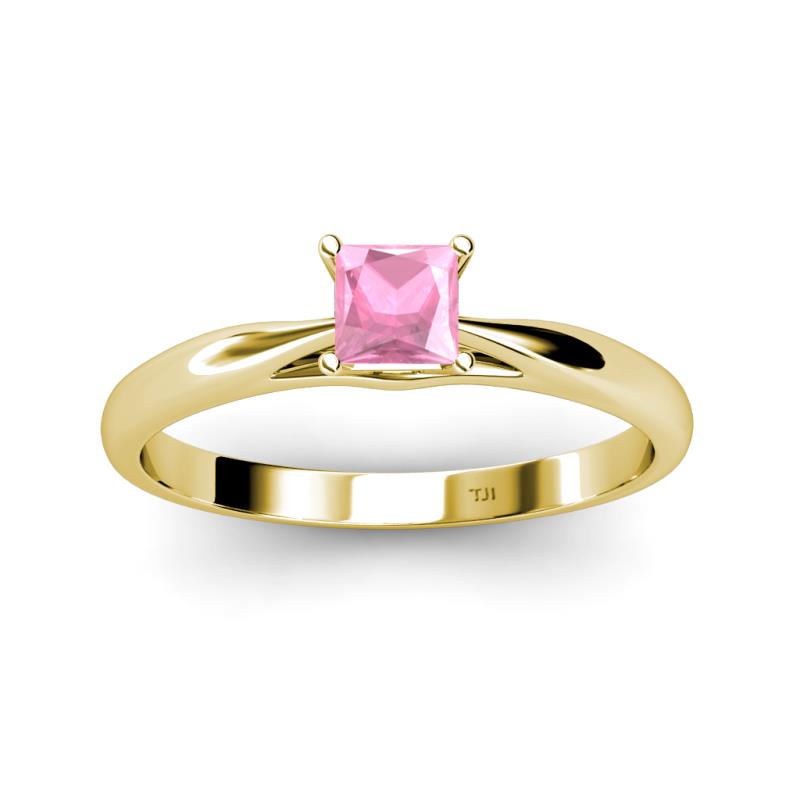 Princess Cut (5.5 mm) Pink Tourmaline Womens Solitaire Engagement Ring 0.90 ct 18K Yellow Gold More Details ...
