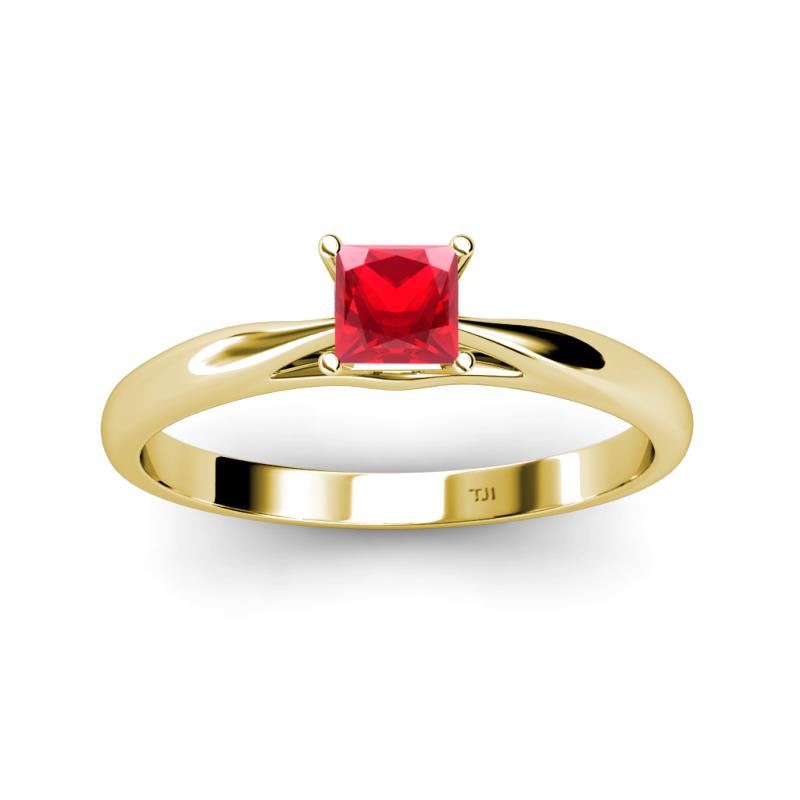 Princess Cut (5.5 mm) Red Garnet Womens Solitaire Engagement Ring 0.95 ct 18K Yellow Gold More Details ...