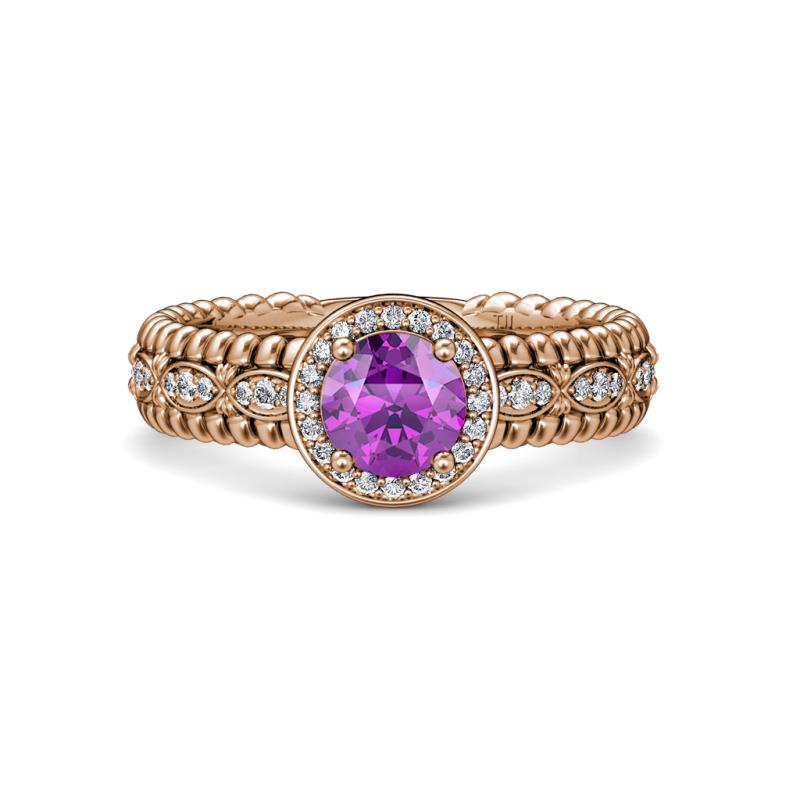 1 1/8 ctw Round Amethyst and Diamond Marquise Shank Womens Halo Engagement Ring 18K Rose Gold More Details ...
