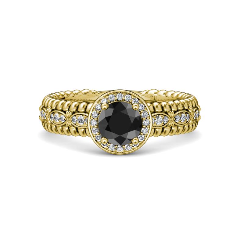 1 1/4 ctw Round Black and White Diamond Marquise Shank Womens Halo Engagement Ring 18K Yellow Gold More Details ...