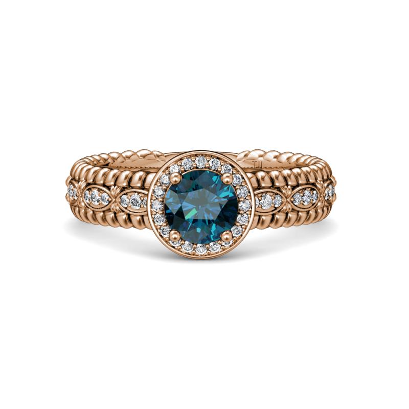 1 1/4 ctw Round Blue and White Diamond Marquise Shank Womens Halo Engagement Ring 18K Rose Gold More Details ...