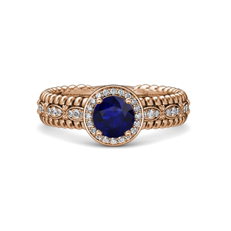 1 1/4 ctw Round Blue Sapphire and Diamond Marquise Shank Womens Halo Engagement Ring 18K Rose Gold More Details ...