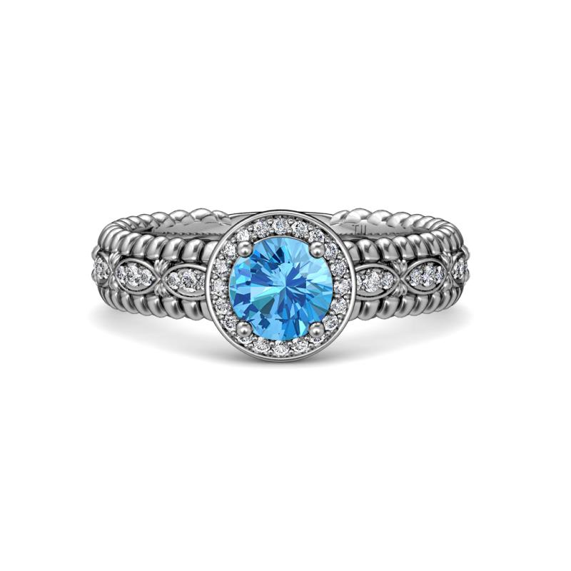 • 38 Round Diamond of 0.27 ctw/1.15 mm and 1 Round Blue Topaz of 0.95 ctw/6.5 mm set using Pave and Prong Setting.