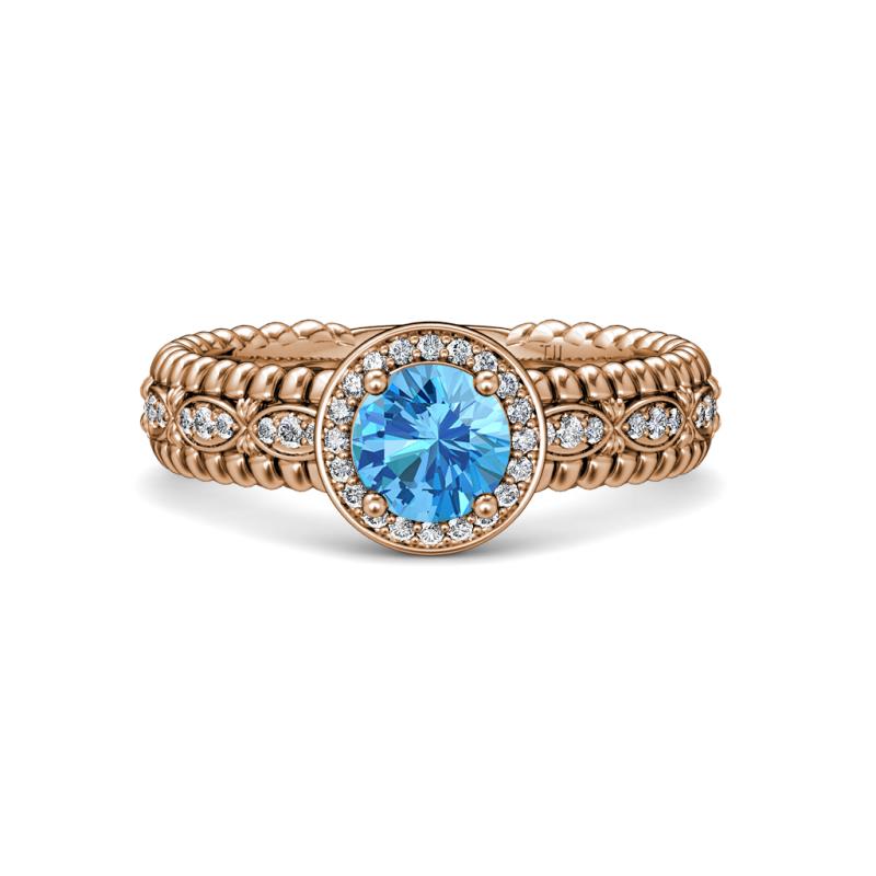 1 1/5 ctw Round Blue Topaz and Diamond Marquise Shank Womens Halo Engagement Ring 18K Rose Gold More Details ...