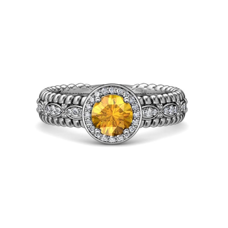 1 1/8 ctw Round Citrine and Diamond Marquise Shank Womens Halo Engagement Ring 14K White Gold More Details ...