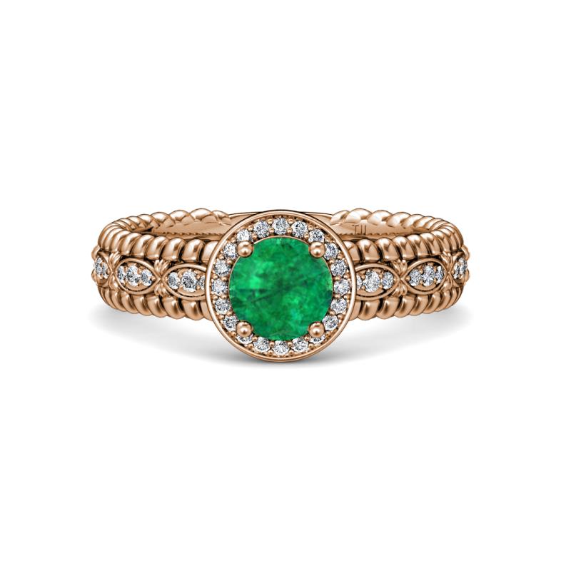 1 ctw Round Emerald and Diamond Marquise Shank Womens Halo Engagement Ring 18K Rose Gold More Details ...