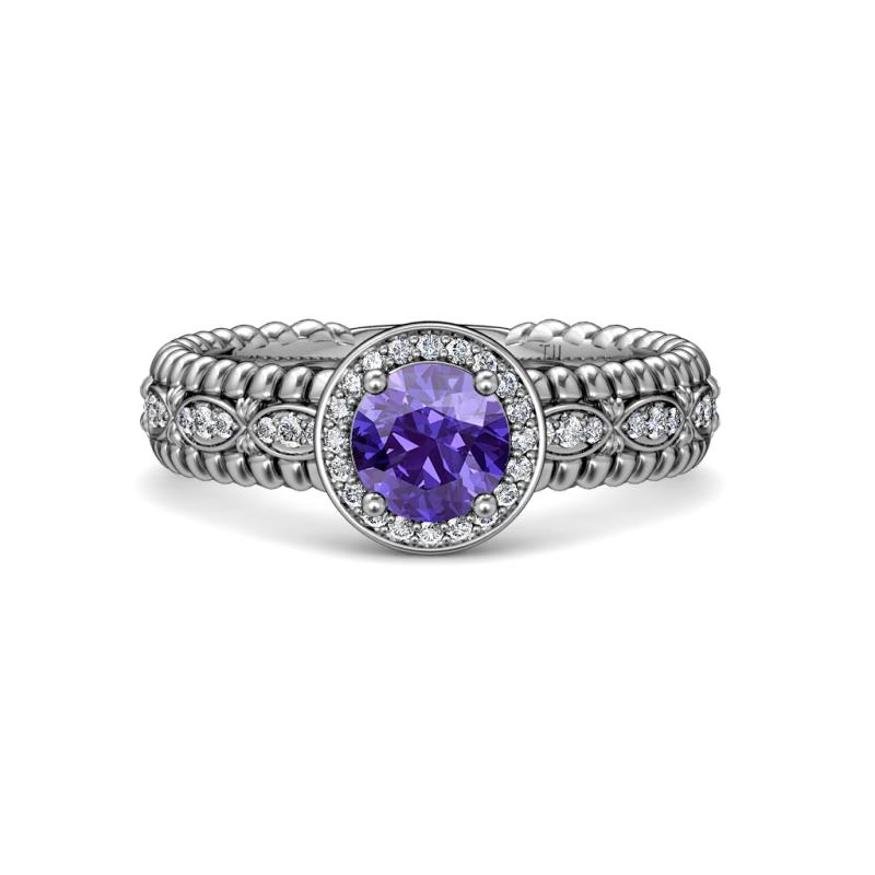 1 1/8 ctw Round Iolite and Diamond Marquise Shank Womens Halo Engagement Ring Platinum More Details ...