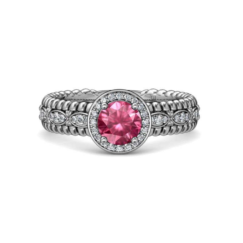 1 1/8 ctw Round Pink Tourmaline and Diamond Marquise Shank Womens Halo Engagement Ring 14K White Gold More Details ...