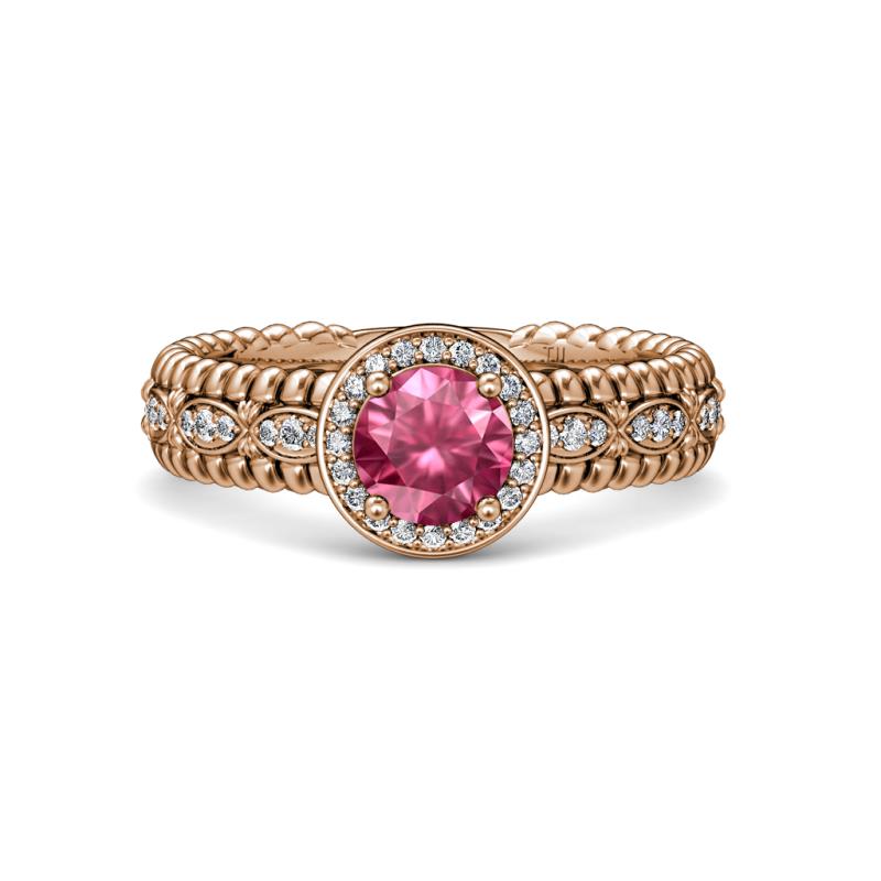 1 1/8 ctw Round Pink Tourmaline and Diamond Marquise Shank Womens Halo Engagement Ring 18K Rose Gold More Details ...