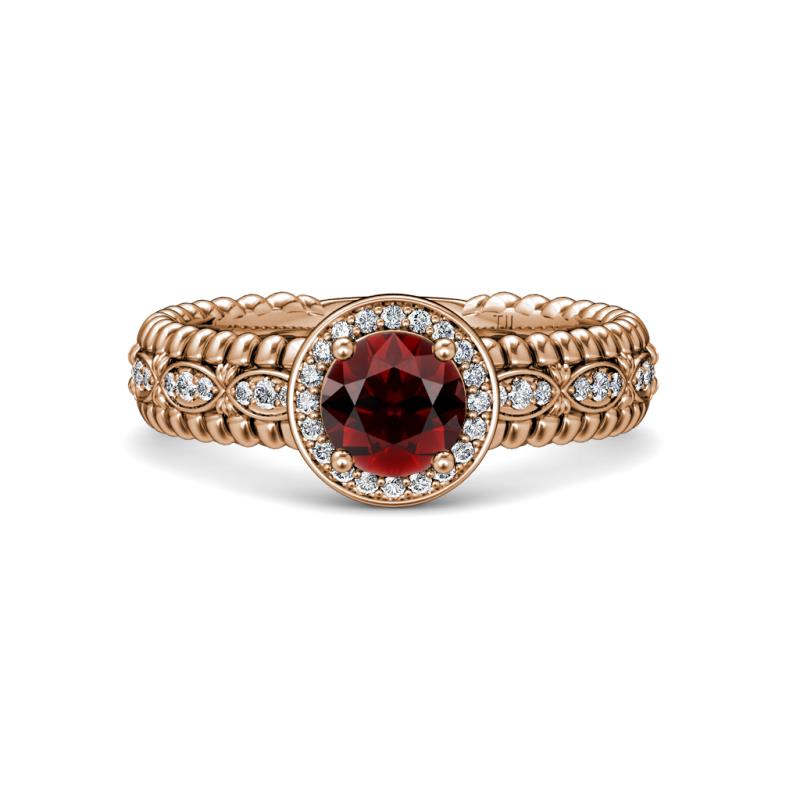 1 1/3 ctw Round Red Garnet and Diamond Marquise Shank Womens Halo Engagement Ring 14K Rose Gold More Details ...