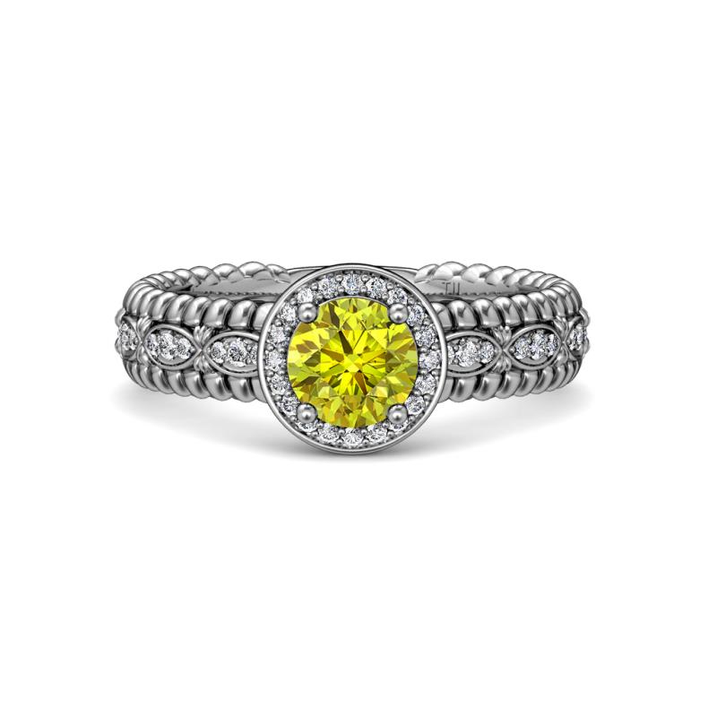 1 1/4 ctw Round Yellow and White Diamond Marquise Shank Womens Halo Engagement Ring 14K White Gold More Details ...