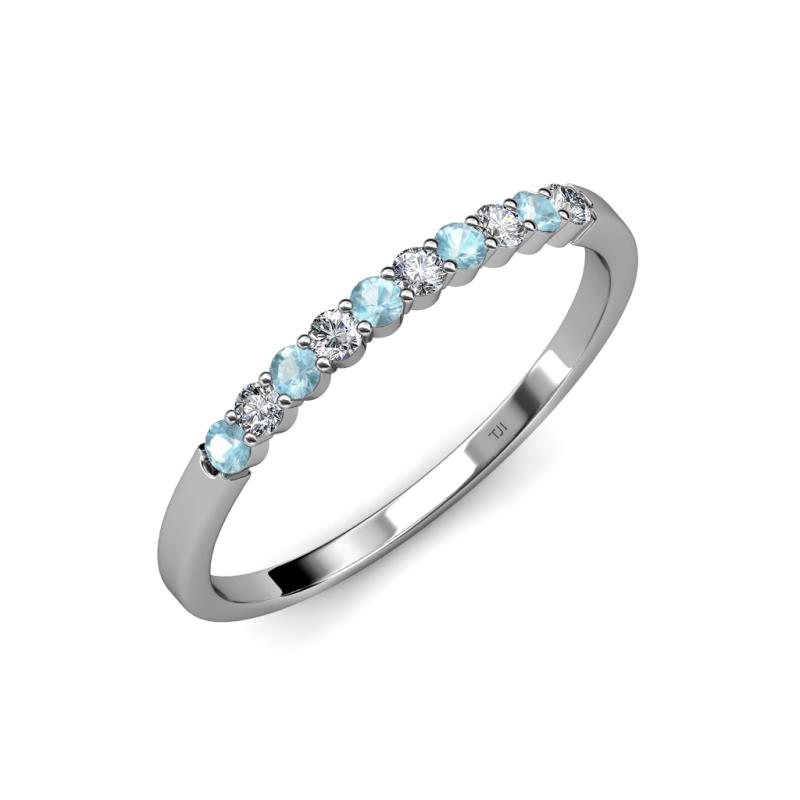 Aquamarine and Lab Grown Diamond 10 Stone Womens Wedding Band Stackable 0.43 ctw 18K White Gold More Details ...
