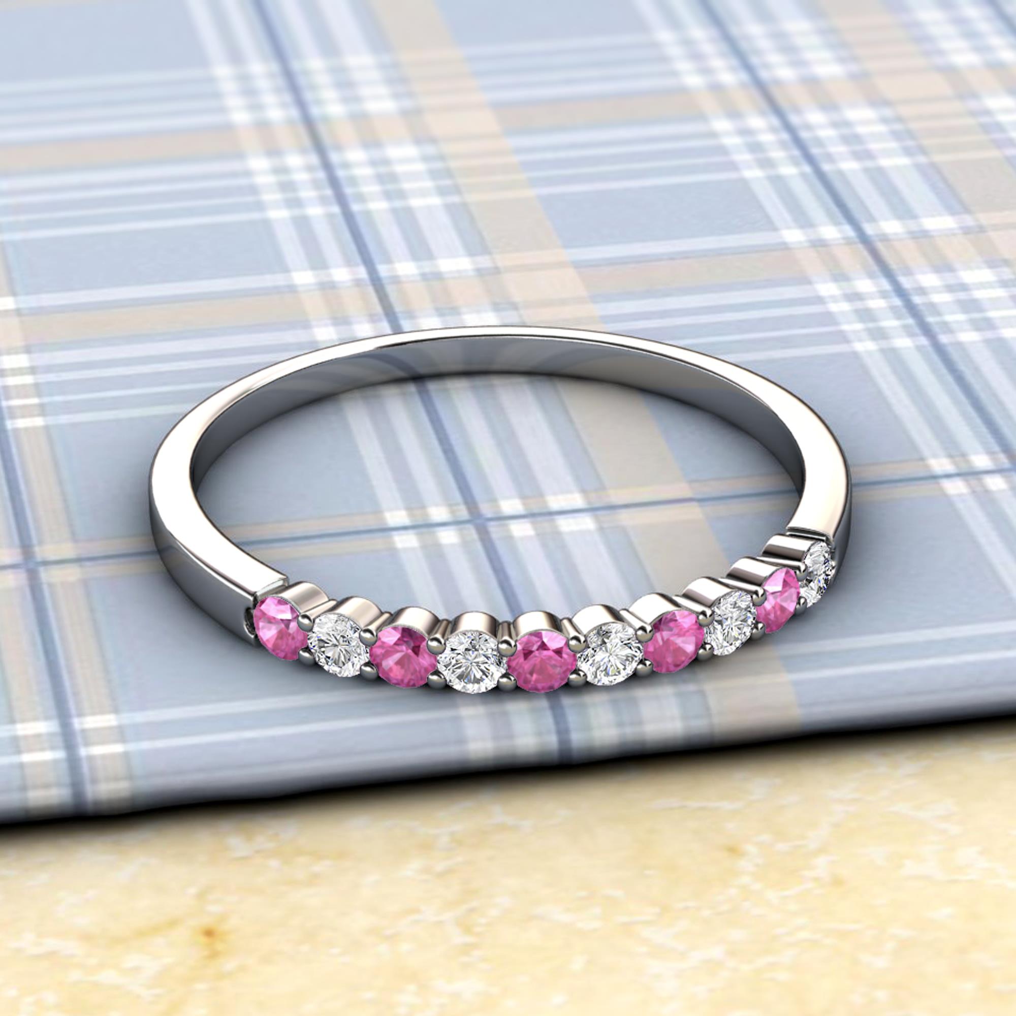 Pink Sapphire and Diamond 10 Stone Womens Wedding Band Stackable 0.51 ctw 18K White Gold More Details ...