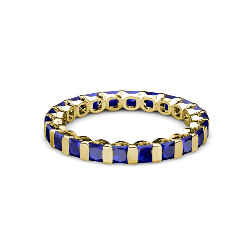 Get a pristine glow with this stunning Eternity Band featuring series of common channel set Blue Sapphire that will embrace your love's finger and will express your eternal love for her.