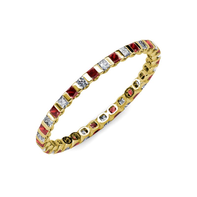 Princess Cut Red Garnet and Diamond 1.21 ctw* Channel Set Womens Eternity Ring Stackable 18K Yellow Gold More Details ...