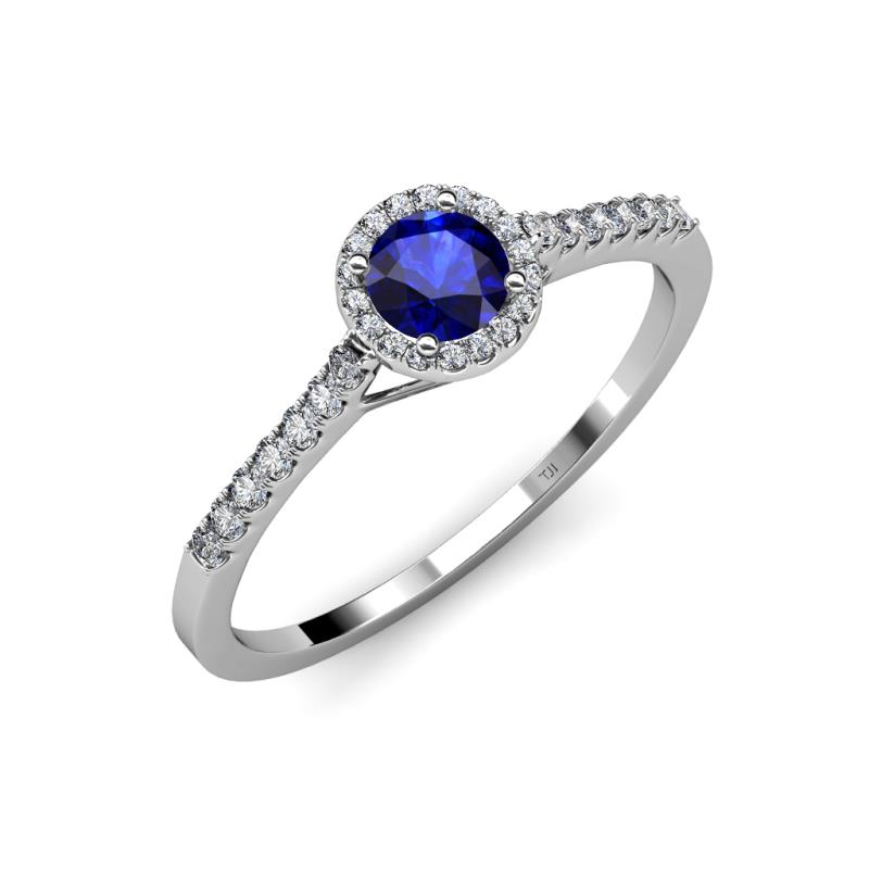 Blue Sapphire and Diamond Womens Halo Engagement Ring 0.95 ctw Platinum More Details ...