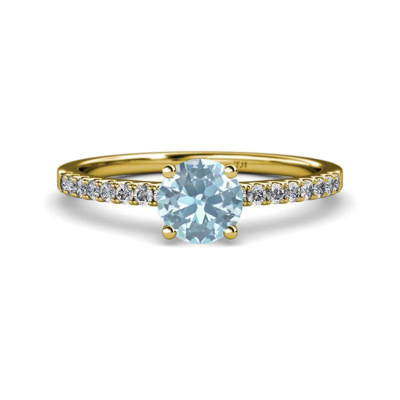 This Elegant Solitaire Plus Engagement Rings holds a Center Aquamarine in 4 Prong Setting with single row of Diamonds in cut down Pave Shank is an exquisite reminder of the Love you share.