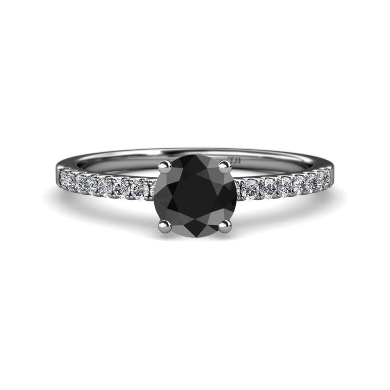 This Elegant Solitaire Plus Engagement Rings holds a Center Black Diamond in 4 Prong Setting with single row of Diamonds in cut down Pave Shank is an exquisite reminder of the Love you share.