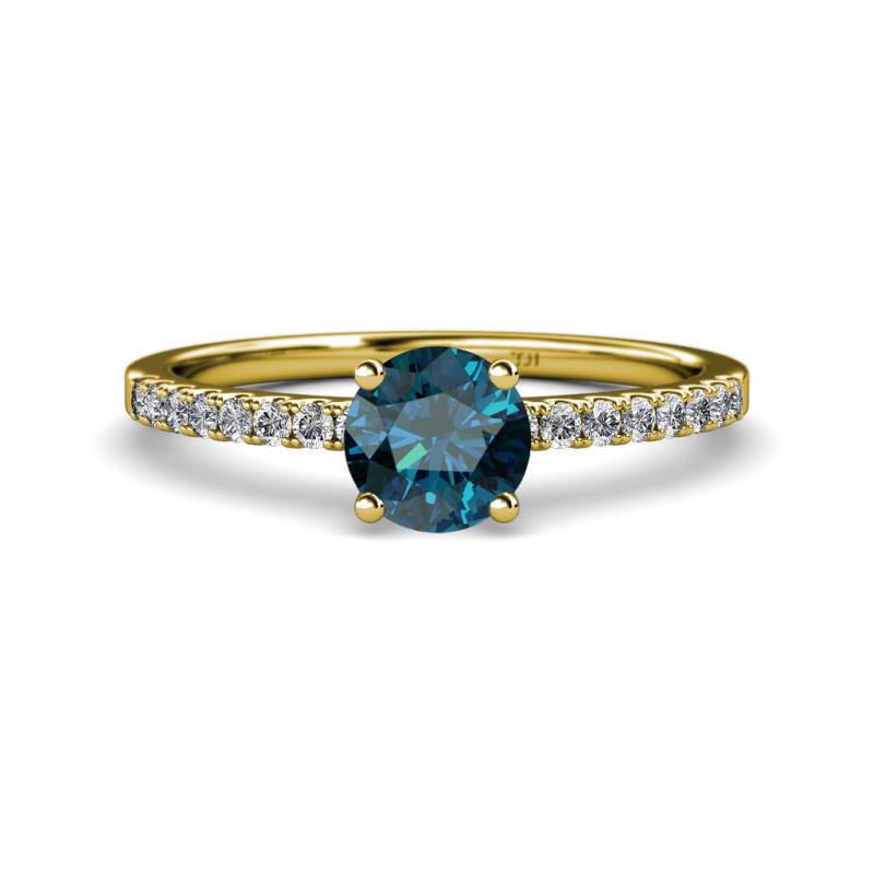 Round Blue and White Diamond Womens Solitaire Plus Engagement Ring 1.30 ctw 18K Yellow Gold More Details ...