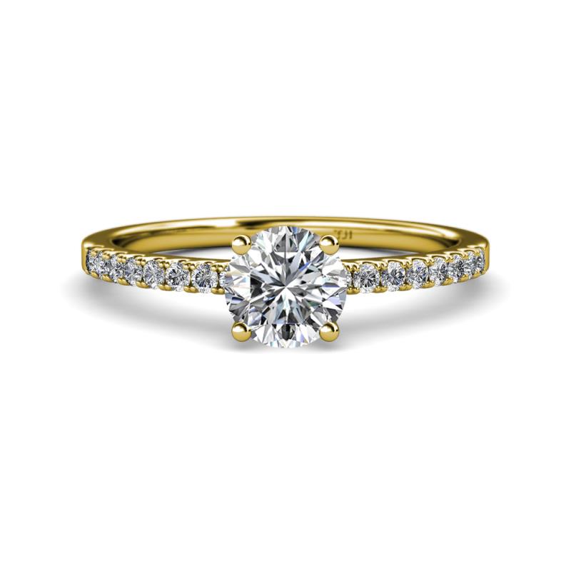 This Elegant Solitaire Plus Engagement Ring of 1.30 ctw holds a Center IGI Certified Round Lab Grown Diamond in 4 Prong Setting with single row of Natural Diamonds in cut down Pave Shank is an exquisite reminder of the Love you share.