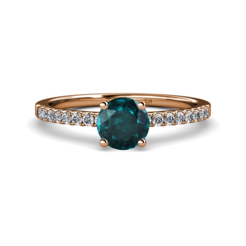 This Elegant Solitaire Plus Engagement Rings holds a Center London Blue Topaz in 4 Prong Setting with single row of Diamonds in cut down Pave Shank is an exquisite reminder of the Love you share.