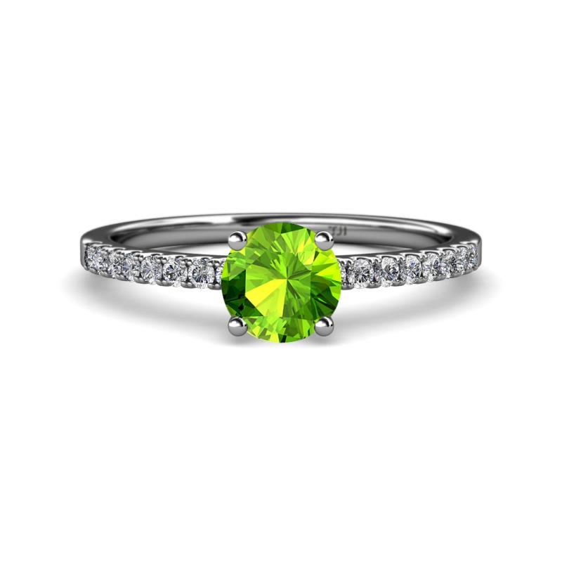 Round Peridot and Diamond Womens Solitaire Plus Engagement Ring 1.40 ctw 18K White Gold More Details ...