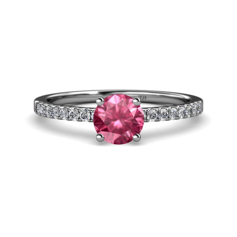Round Pink Tourmaline and Diamond Womens Solitaire Plus Engagement Ring 1.15 ctw 18K White Gold More Details ...