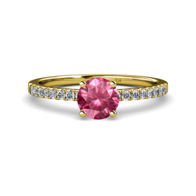 Round Pink Tourmaline and Diamond Womens Solitaire Plus Engagement Ring 1.15 ctw 18K Yellow Gold More Details ...