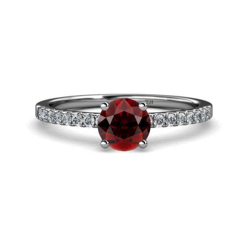 Round Red Garnet and Diamond Womens Solitaire Plus Engagement Ring 1.35 ctw 14K White Gold More Details ...