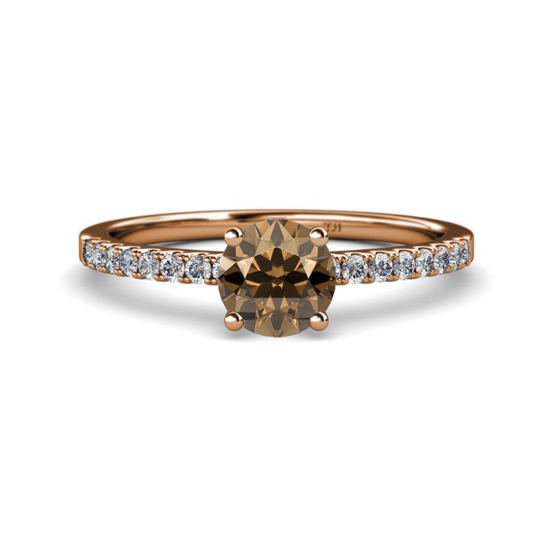 This Elegant Solitaire Plus Engagement Rings holds a Center Smoky Quartz in 4 Prong Setting with single row of Diamonds in cut down Pave Shank is an exquisite reminder of the Love you share.