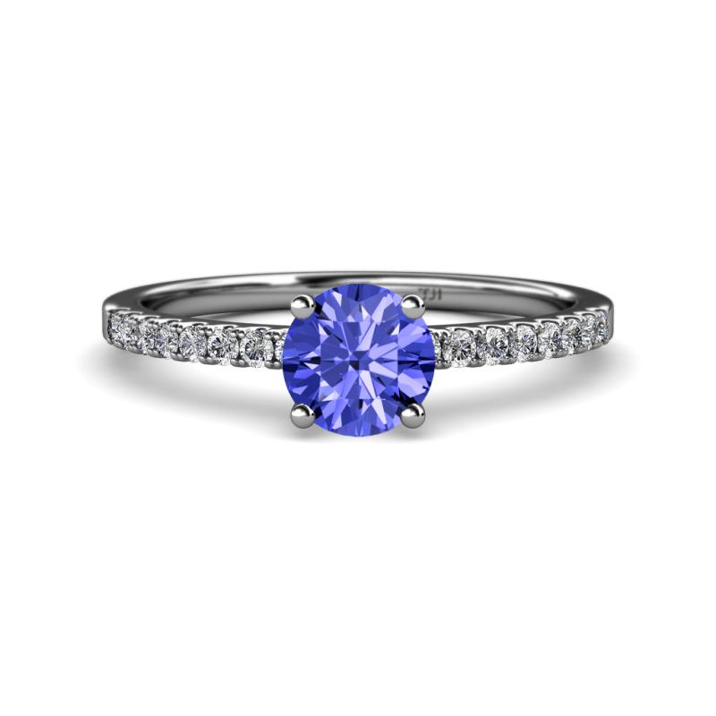 Round Tanzanite and Diamond Womens Solitaire Plus Engagement Ring 1.20 ctw 18K White Gold More Details ...