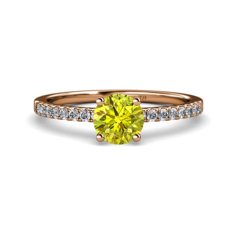 This Elegant Solitaire Plus Engagement Rings holds a Center Yellow Diamond in 4 Prong Setting with single row of Diamonds in cut down Pave Shank is an exquisite reminder of the Love you share.