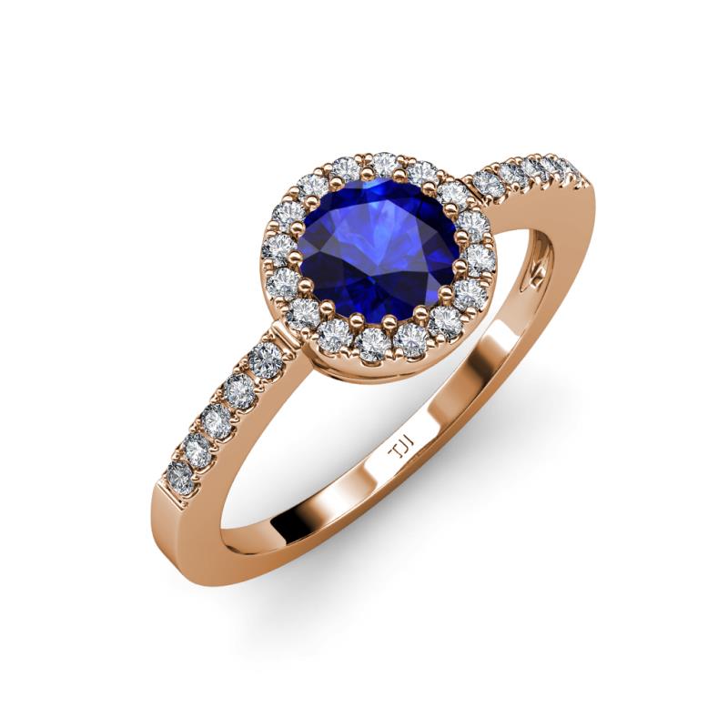 Blue Sapphire and Diamond Womens Halo Engagement Ring 1.57 ctw 14K Rose Gold More Details ...