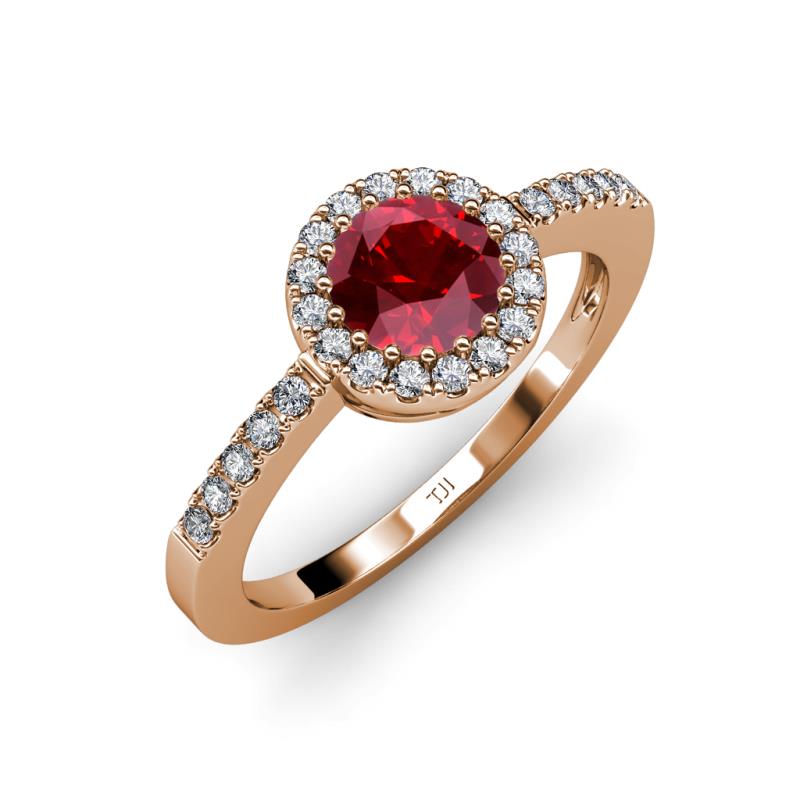 Ruby and Diamond Womens Halo Engagement Ring 1.57 ctw 18K Rose Gold More Details ...