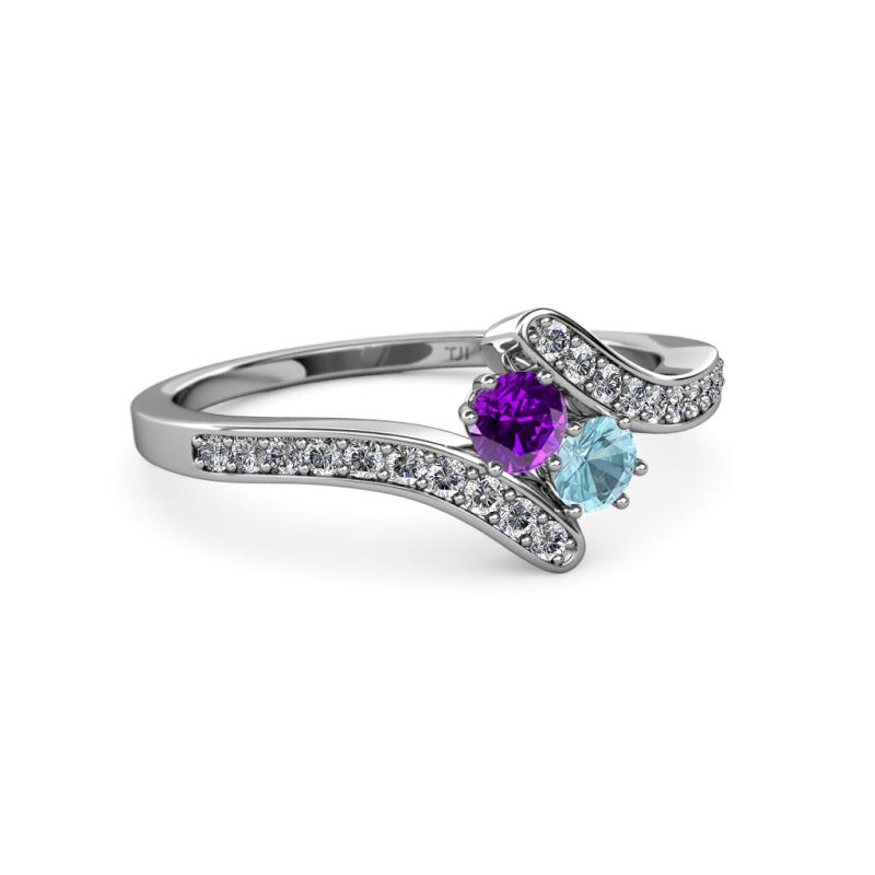 Amethyst and Aquamarine 2 Stone with Side Diamonds Womens Bypass Engagement Ring 0.66 ctw 14K White Gold More Details ...
