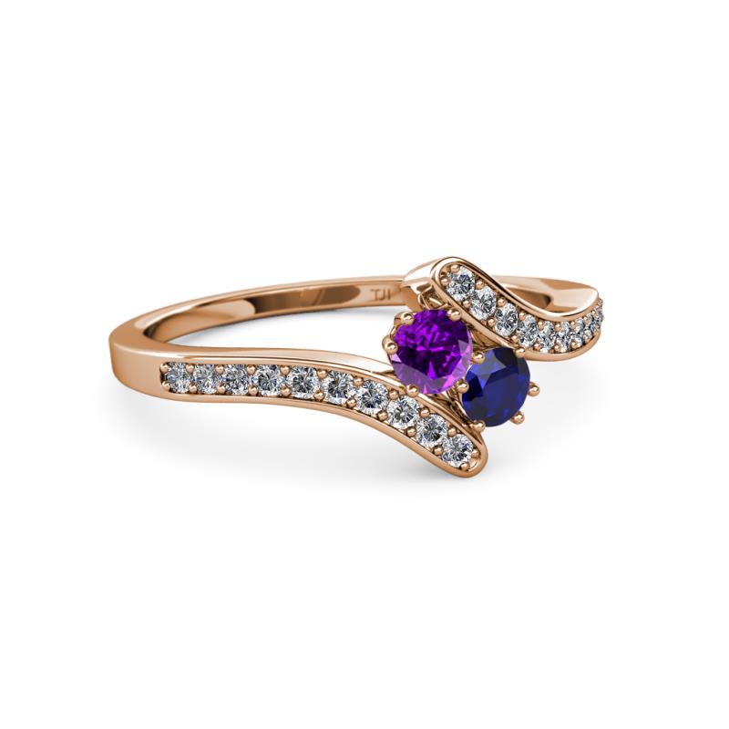 Amethyst and Blue Sapphire 2 Stone with Side Diamonds Womens Bypass Engagement Ring 0.69 ctw 14K Rose Gold More Details ...