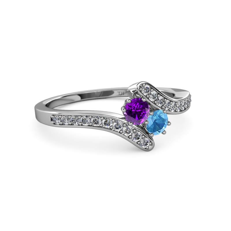 Designed with a meaningful expression of love, this Ring have mesmerizing combination of Amethyst & Blue Topaz which represents you & your loved one embraced by fascinating Diamond bypass shank symbolizing that your life revolves around each other.