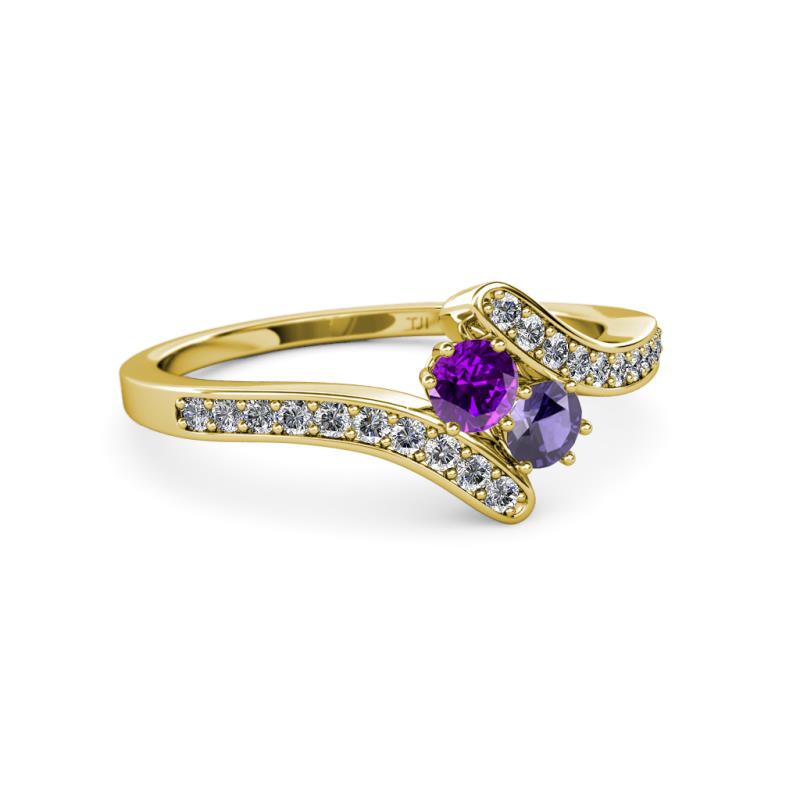 Designed with a meaningful expression of love, this Ring have mesmerizing combination of Amethyst & Iolite which represents you & your loved one embraced by fascinating Diamond bypass shank symbolizing that your life revolves around each other.