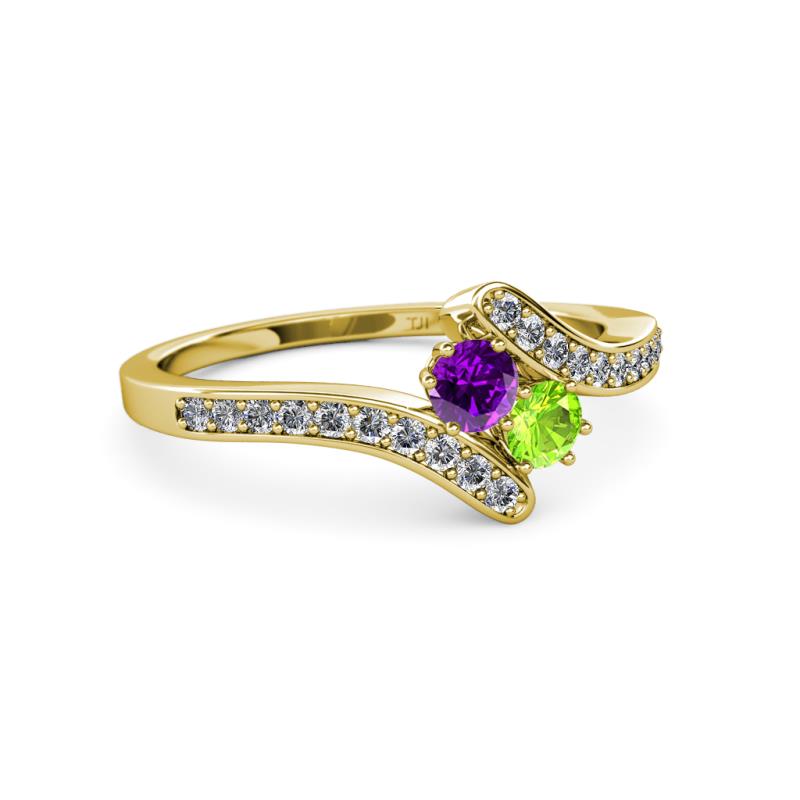 Amethyst and Peridot 2 Stone with Side Diamonds Womens Bypass Engagement Ring 0.71 ctw 14K Yellow Gold More Details ...