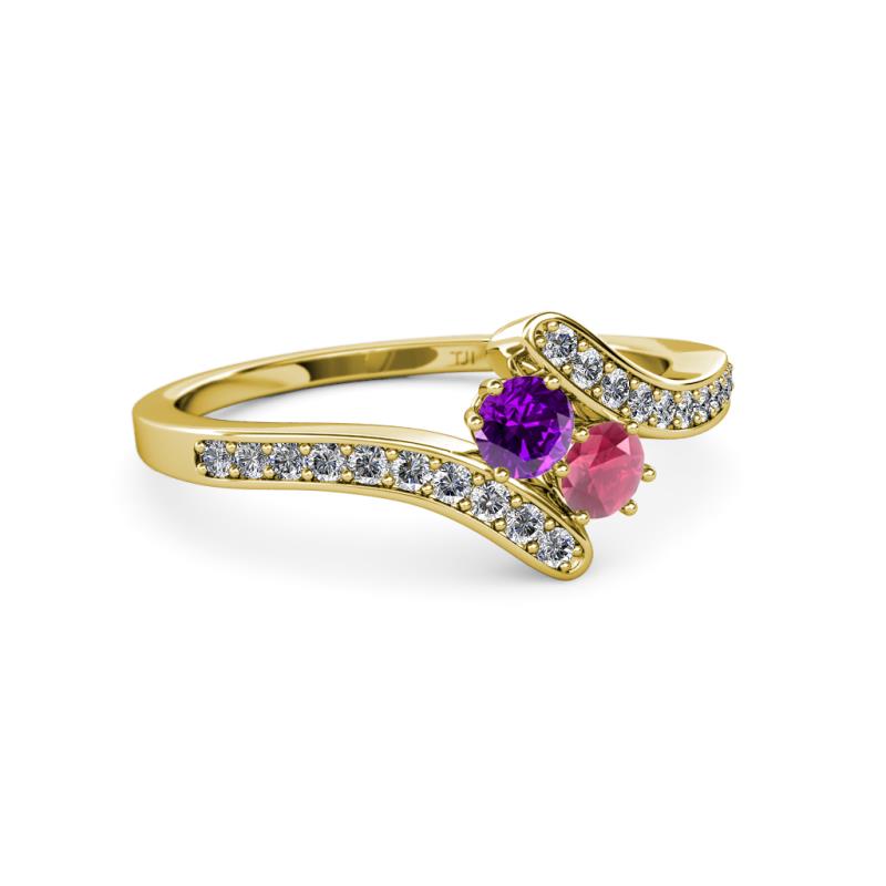 Amethyst and Rhodolite Garnet 2 Stone with Side Diamonds Womens Bypass Engagement Ring 0.71 ctw 14K Yellow Gold More Details ...