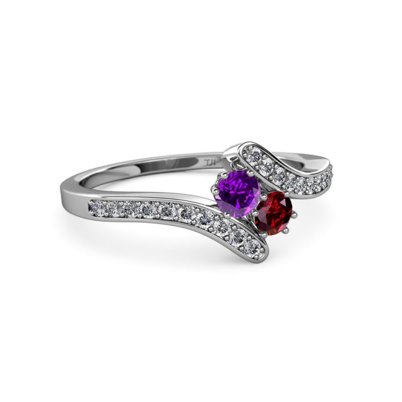 Amethyst and Ruby 2 Stone with Side Diamonds Womens Bypass Engagement Ring 0.69 ctw 14K White Gold More Details ...