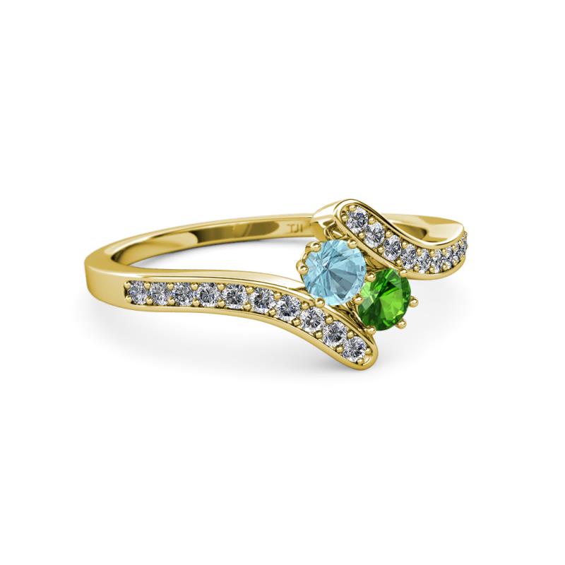 Designed with a meaningful expression of love, this Ring have mesmerizing combination of Aquamarine & Green Garnet which represents you & your loved one embraced by fascinating Diamond bypass shank symbolizing that your life revolves around each other.