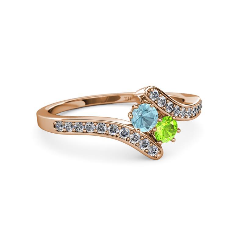 Aquamarine and Peridot 2 Stone with Side Diamonds Womens Bypass Engagement Ring 0.71 ctw 14K Rose Gold More Details ...