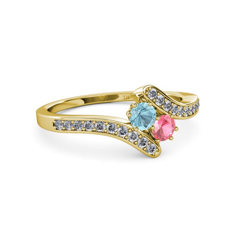 Aquamarine and Pink Tourmaline 2 Stone with Side Diamonds Womens Bypass Engagement Ring 0.66 ctw 14K Yellow Gold More Details ...