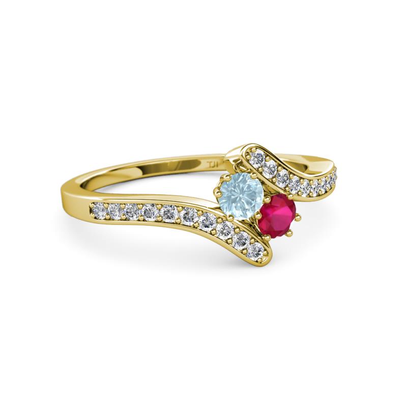 Designed with a meaningful expression of love, this Ring have mesmerizing combination of Aquamarine & Ruby which represents you & your loved one embraced by fascinating Diamond bypass shank symbolizing that your life revolves around each other.